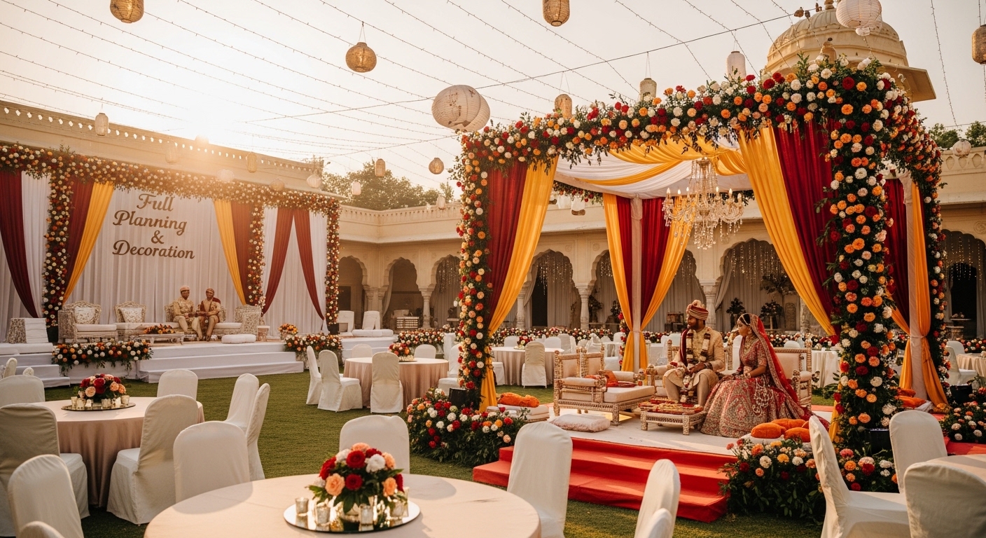 Complete wedding planning with elegant décor, sound, and lighting for a perfect celebration.